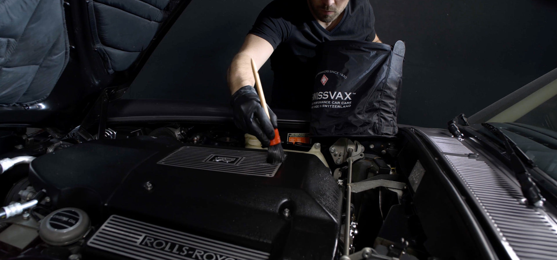 1. Motor vorsichtig mit Swissvax Engine reinigen.